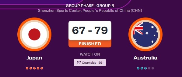 电竞比分网-下半场崩盘!女篮亚洲杯日本67-79澳大利亚 第三和第四节各得8分
